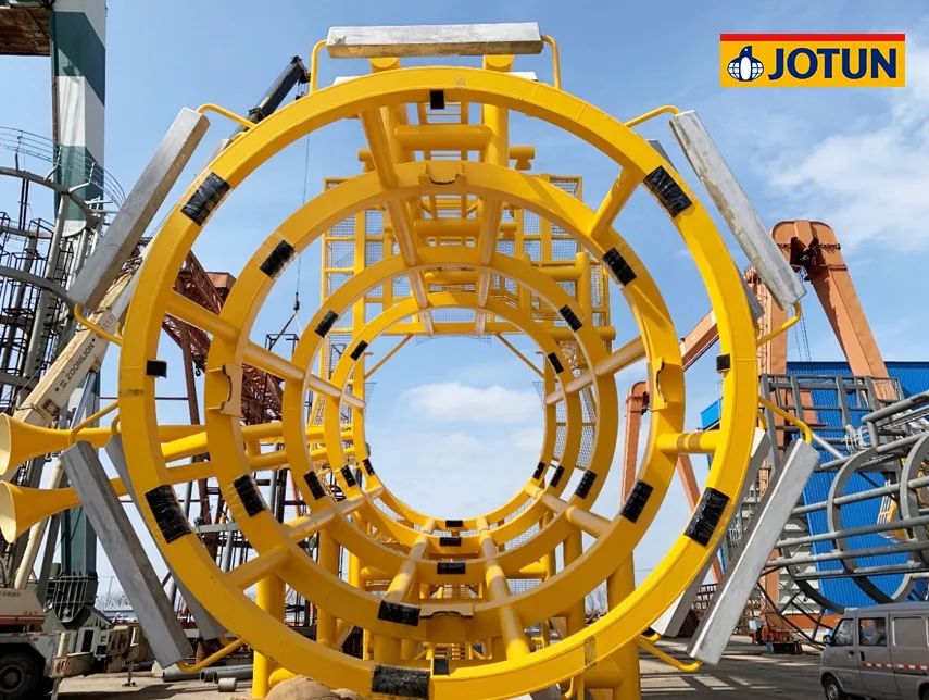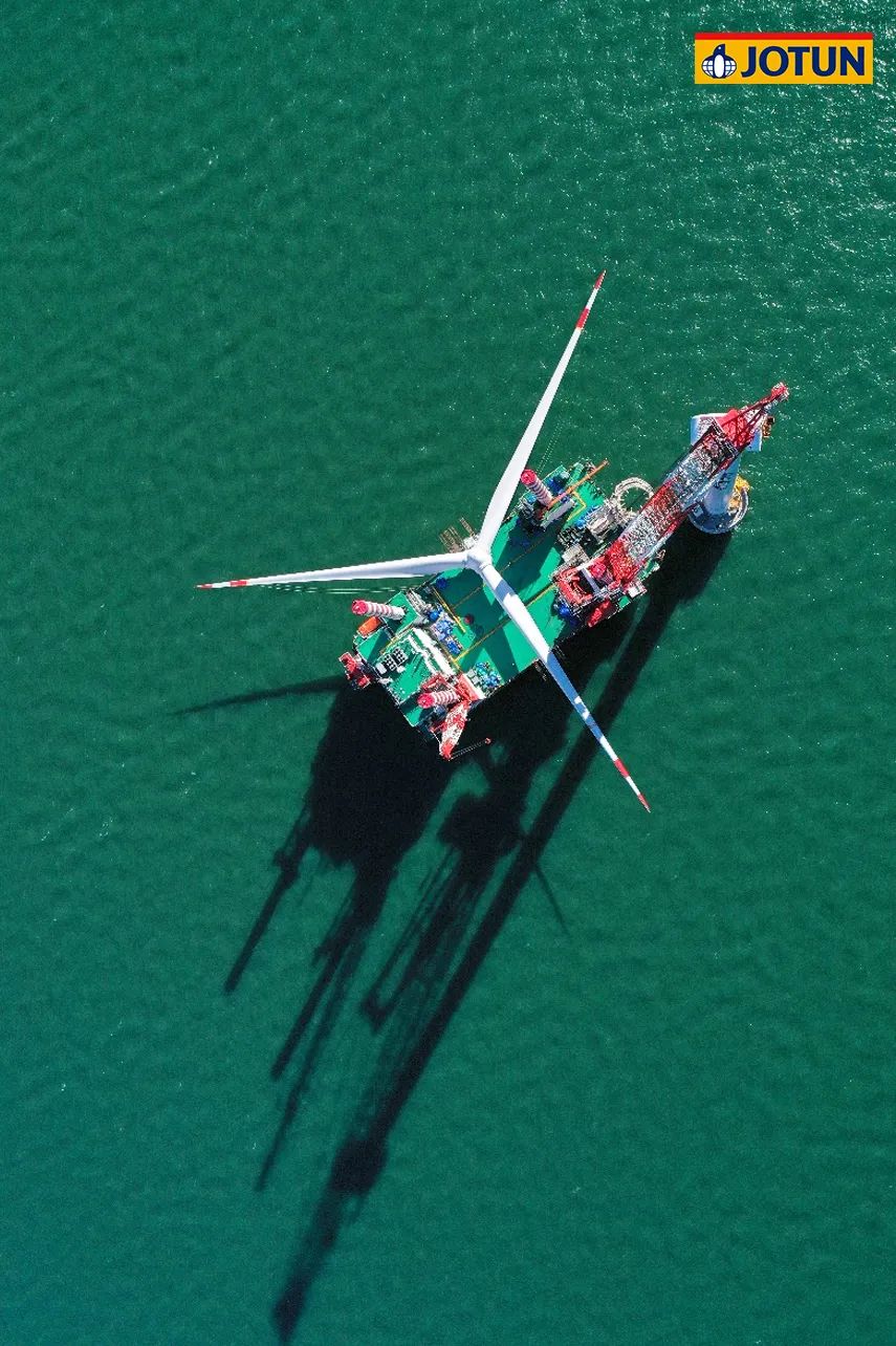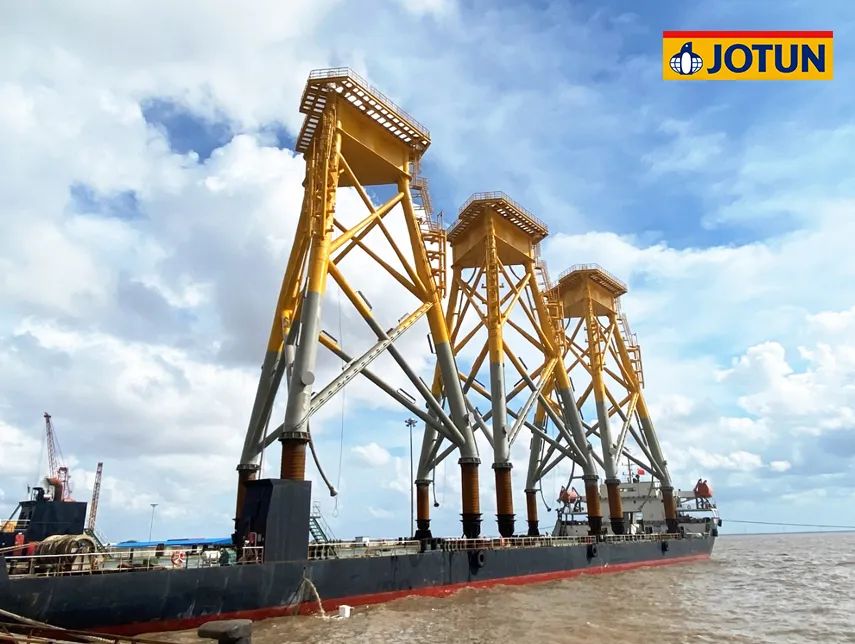 項(xiàng)目總投資102.86億元,規(guī)劃容量500兆瓦,水深范圍41-46米,離岸距離55公里。67臺(tái)海上風(fēng)機(jī)矗立在水深40多米的海里,風(fēng)機(jī)基礎(chǔ)結(jié)構(gòu)采用導(dǎo)管架形式,佐敦為整個(gè)項(xiàng)目的導(dǎo)管架涂裝提供了超過(guò)700,000升防腐涂料。